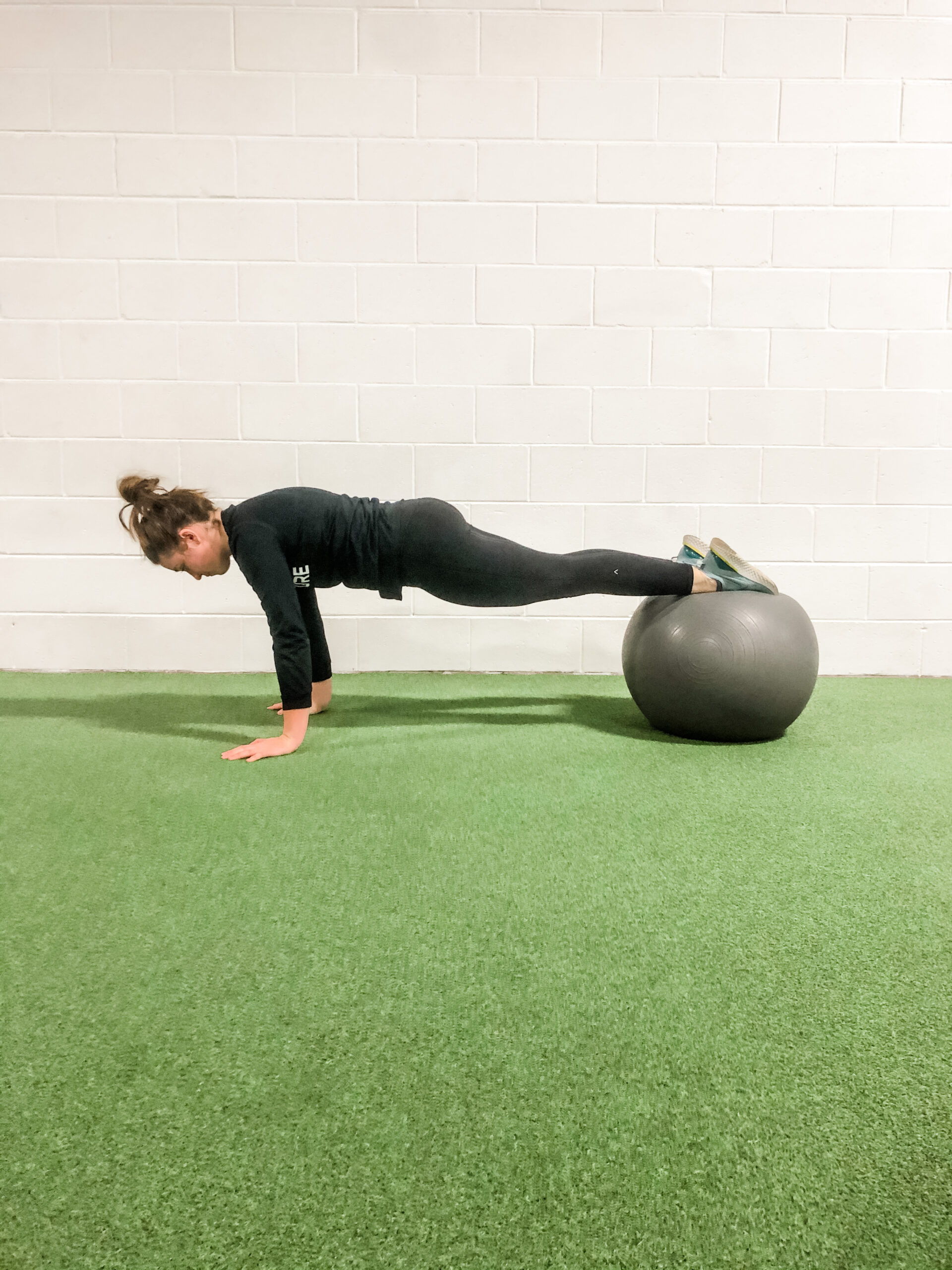 The Swiss Ball can also add instability in an exercise to make it more difficult. Everyone knows what an elbow plank or a glute bridge is right? They are pretty simple exercises. But add in a Swiss Ball and it takes the exercise up a notch. The instability created by the Swiss Ball requires small muscles to fire to help execute a traditional exercise. So an elbow plank becomes harder as a whole and your core will really feel the burn.