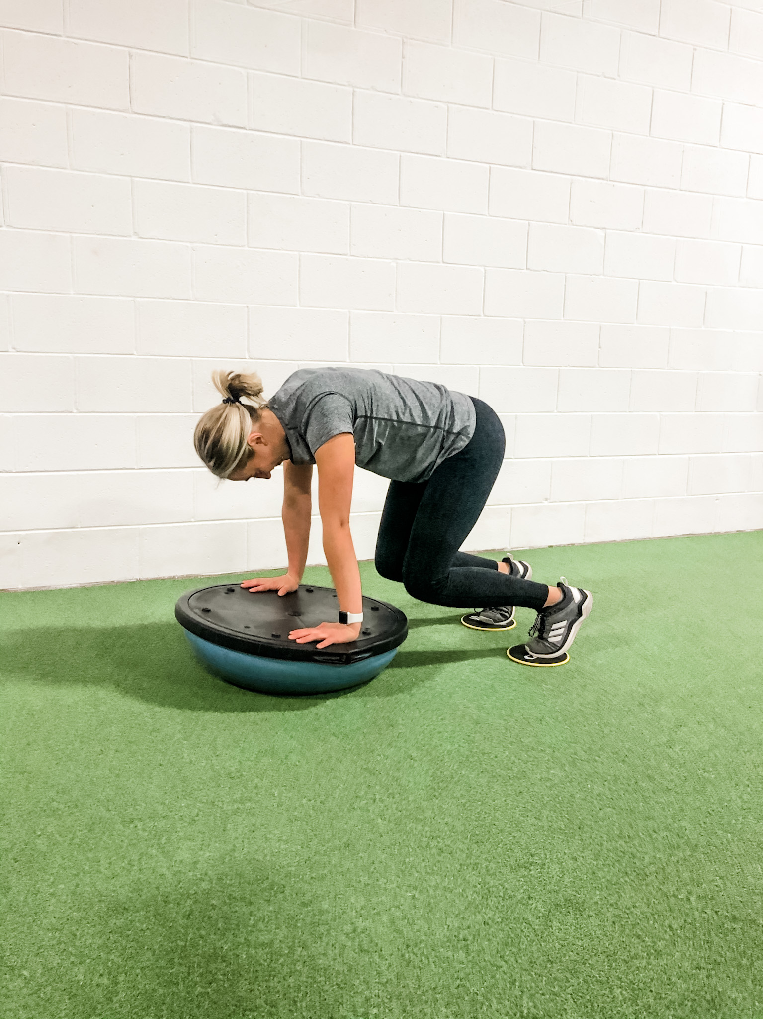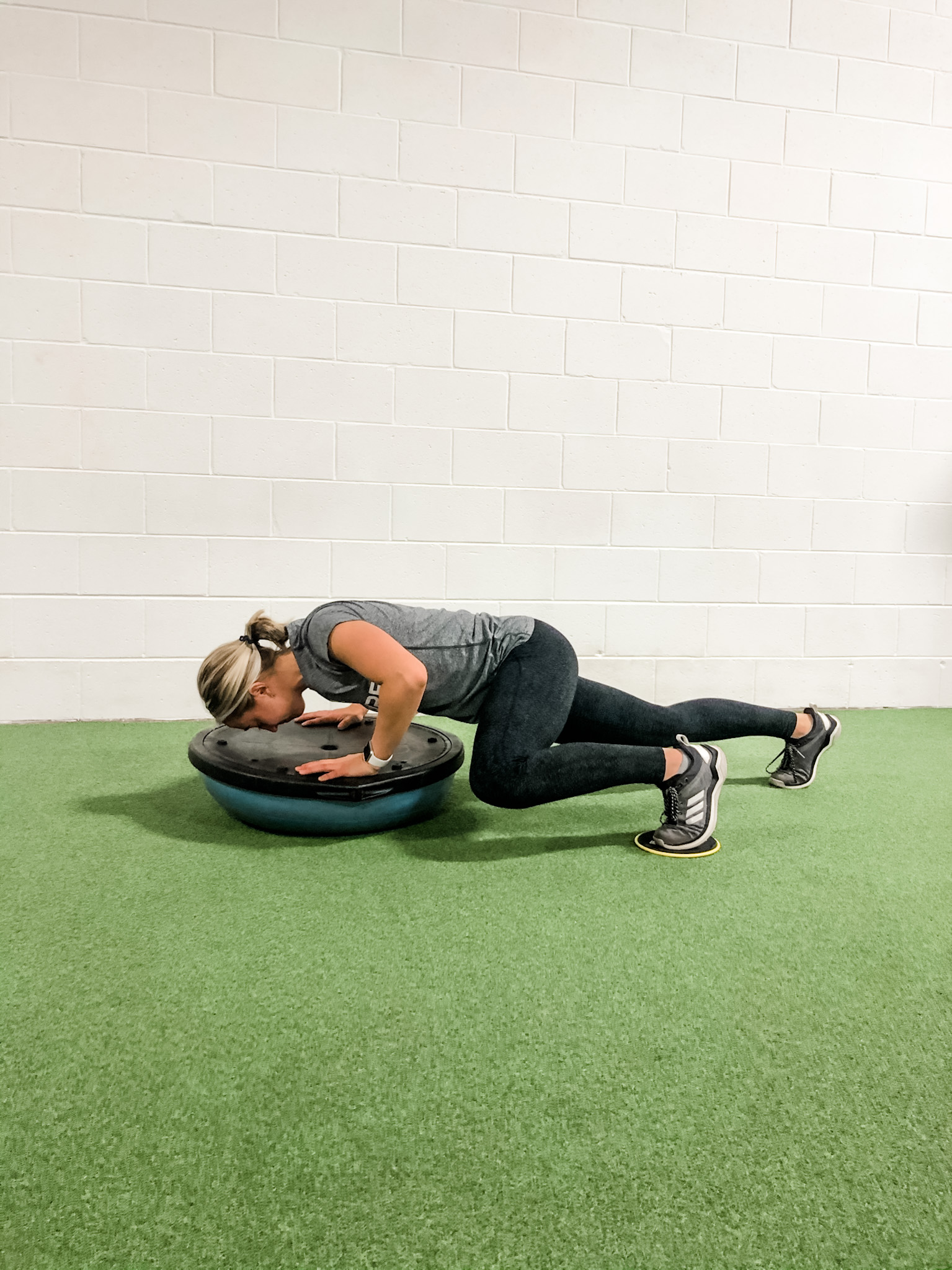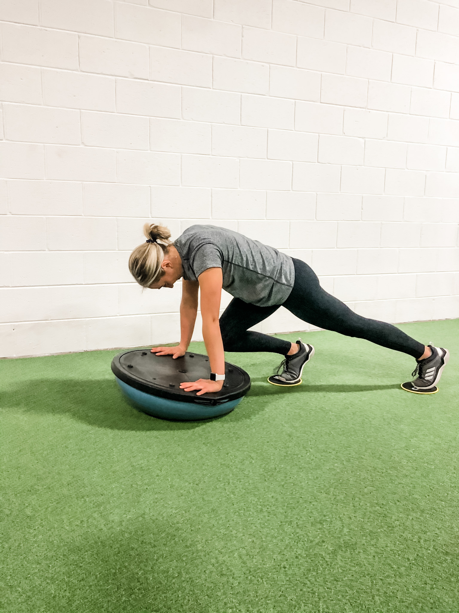 You can add a BOSU Ball into a ton of different exercises to challenge your body in a different way. A common exercise, like a mountain climber, done with either your upper body or lower body on the BOSU Ball will require an increase in your core stability. This WILL make the exercise feel harder.
