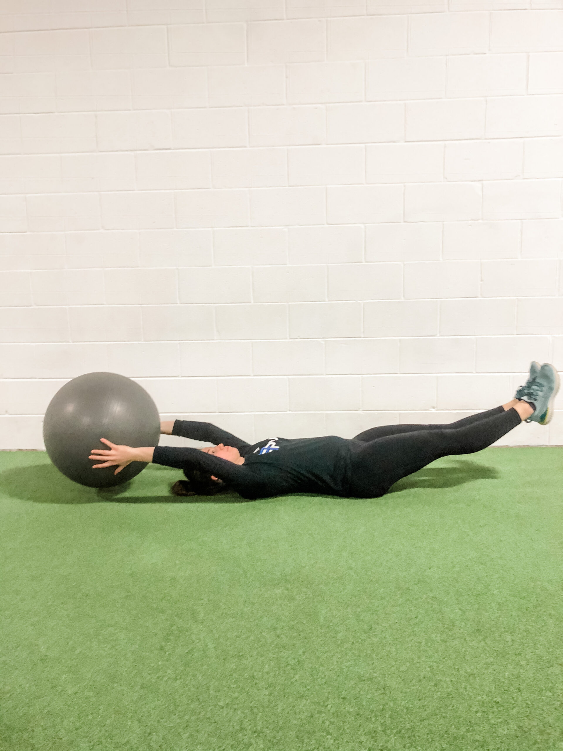 The Swiss Ball is also great to use as a light resistance, especially in core exercises. A Swiss Ball pass over is a great example of this, take a look at the pictures below. With your limbs acting as the levers you only need a light weight to make the exercise challenging.